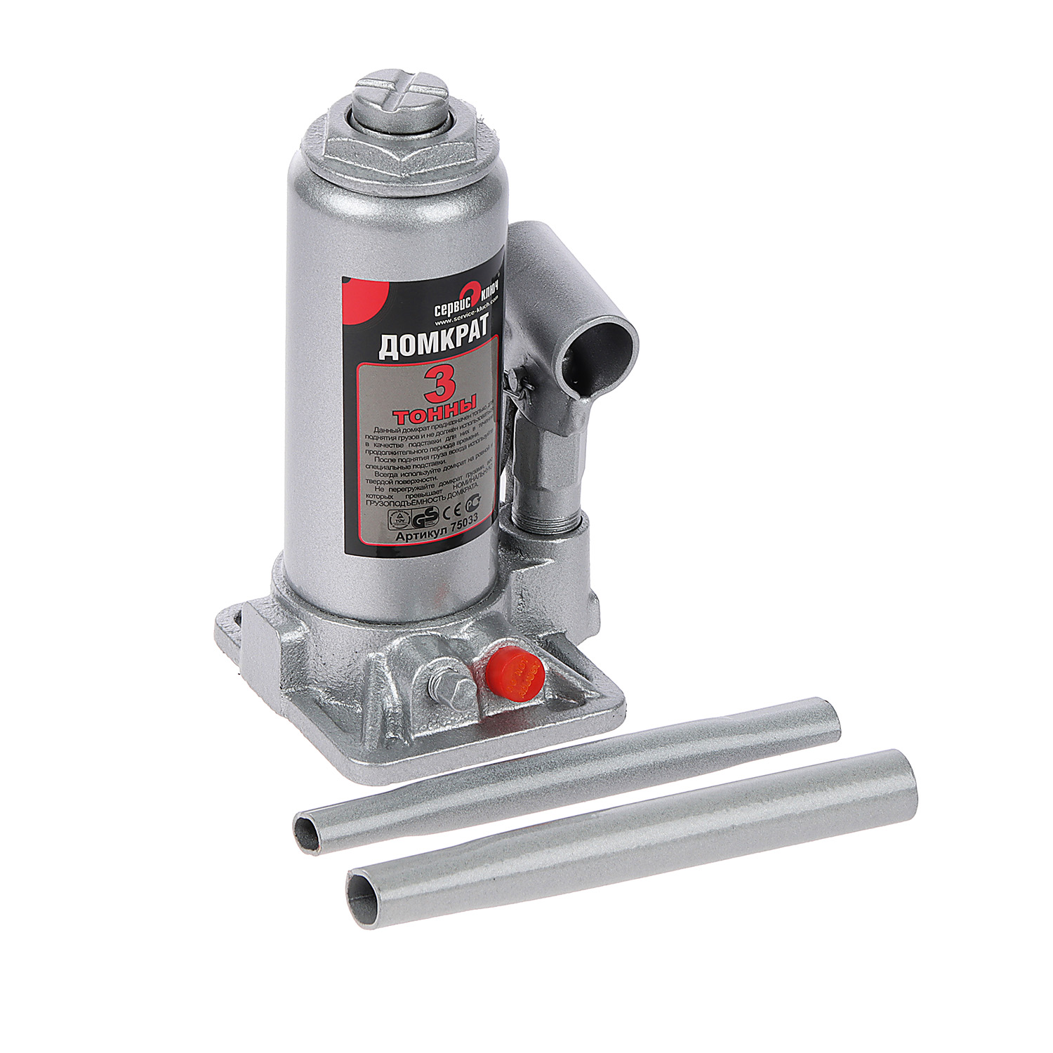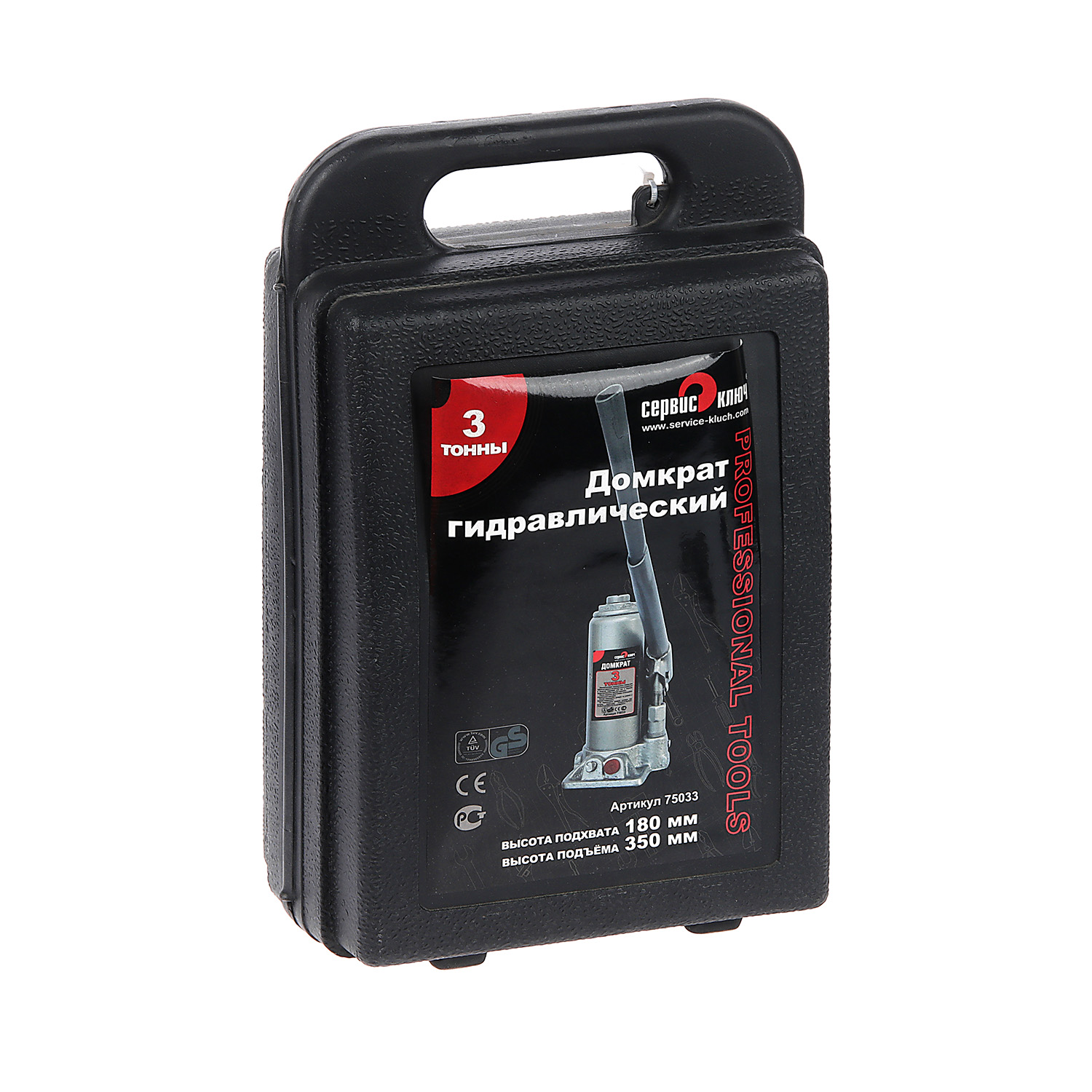 Домкрат гидравлический бутылочный 3т высота подъема 180-350 (кейс) (75033) СЕРВИС КЛЮЧ *1/6