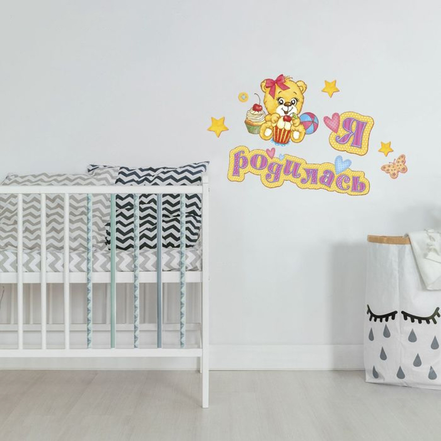 Наклейка интерьерная "Я родился" для девочки 21 х 30 см 886203