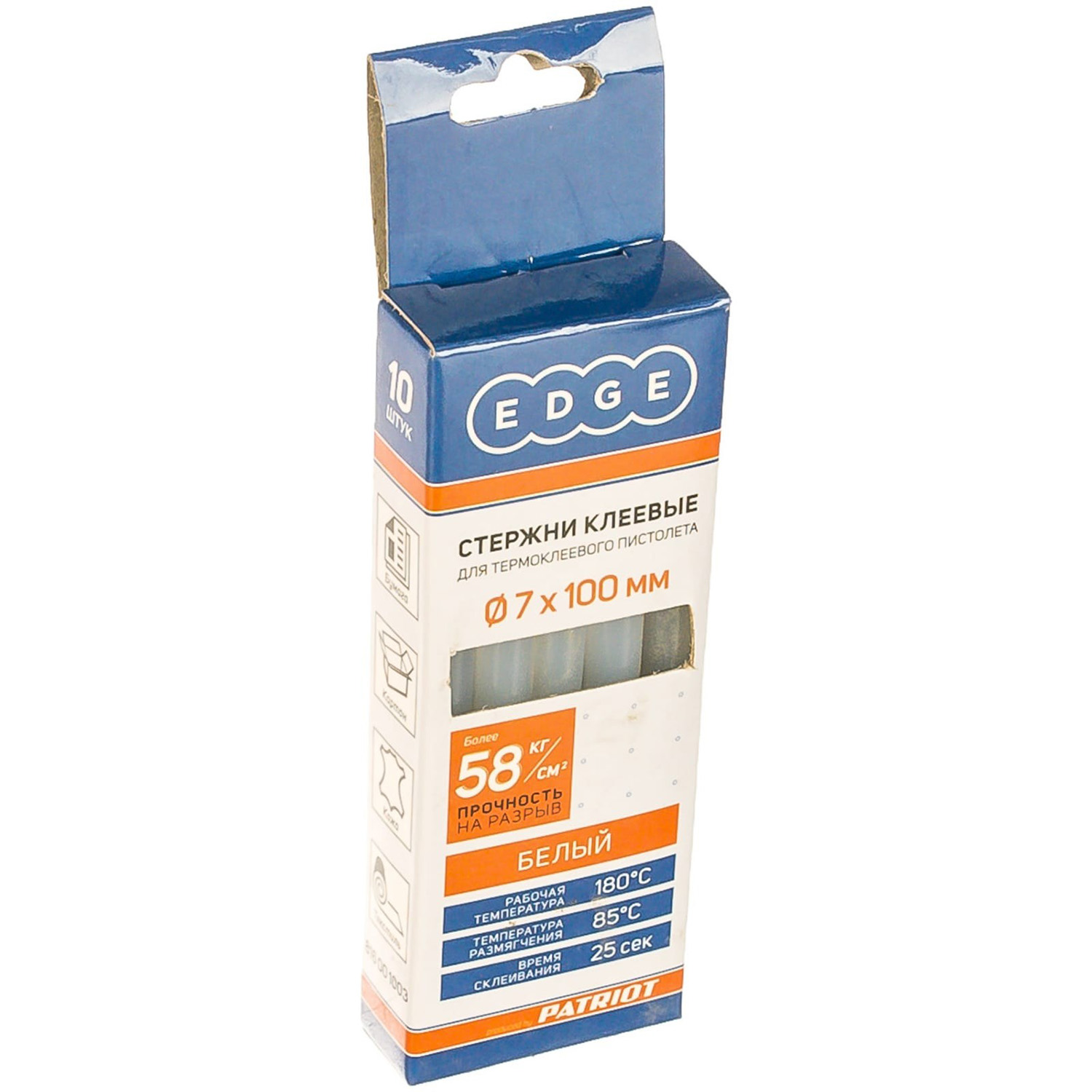 Стержни клеевые 7*100мм белые (уп.10шт) EDGE by PATRIOT *1