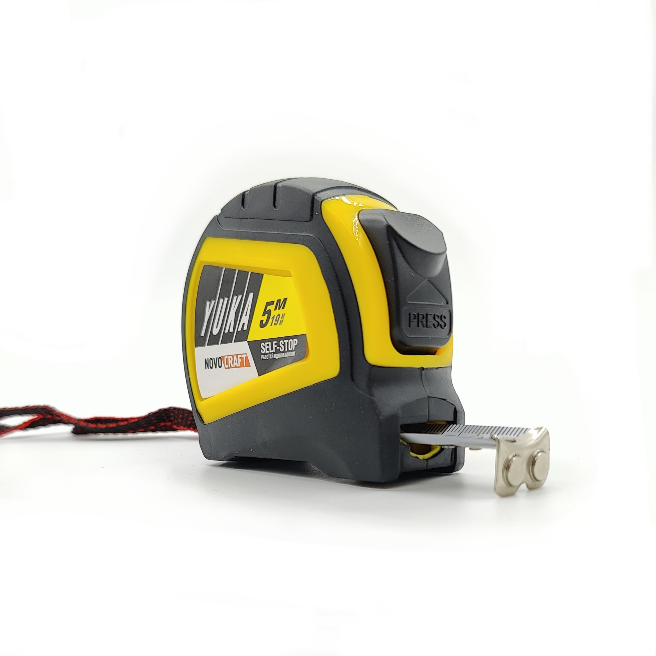 Рулетка 5м х19мм резино-пластик корпус стальн.лента автостоп магнит артYK005190M Novocraft*1/12/120