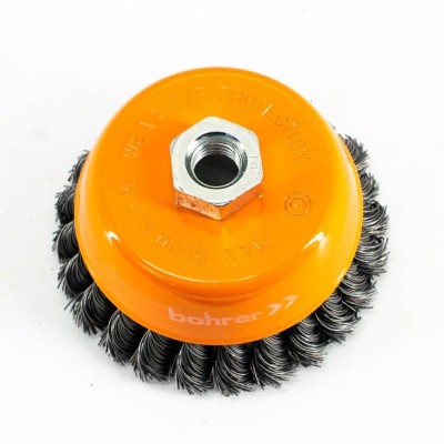 Щетка-крацовка "чаша" витая,жесткая проволока 100мм 0,5мм М14мм для УШМ арт.36200100 Bohrer *1/50