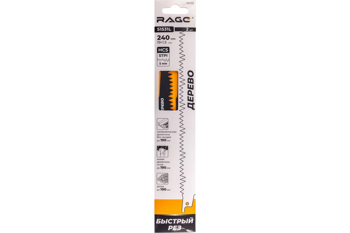 Полотно д/сабельной пилы ДЕРЕВО 2шт 240/5мм быстрый рез S1531L арт.552150 RAGE VIRA *10/100