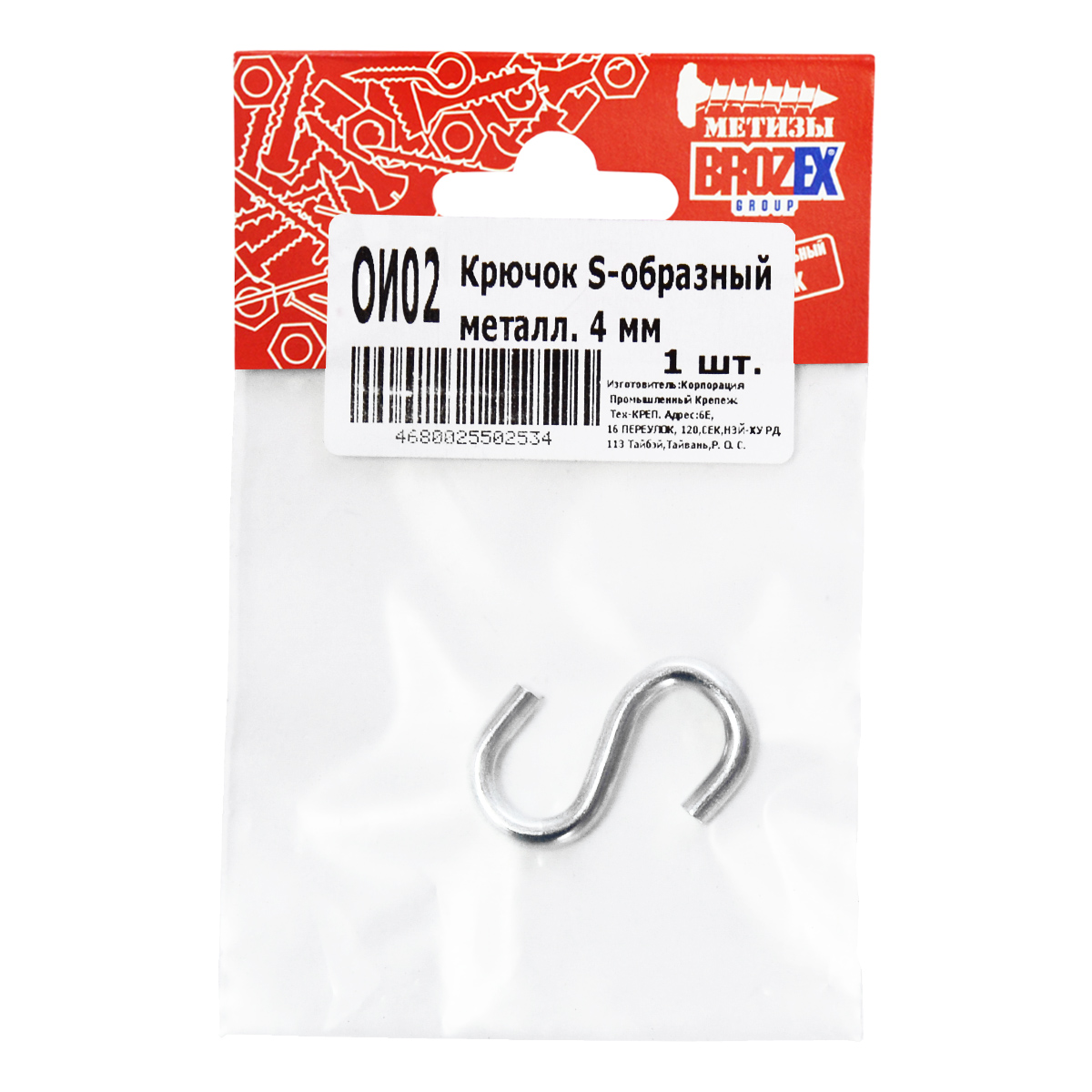 Крючок S-образный металлический 4мм BROZEX (1шт) *10