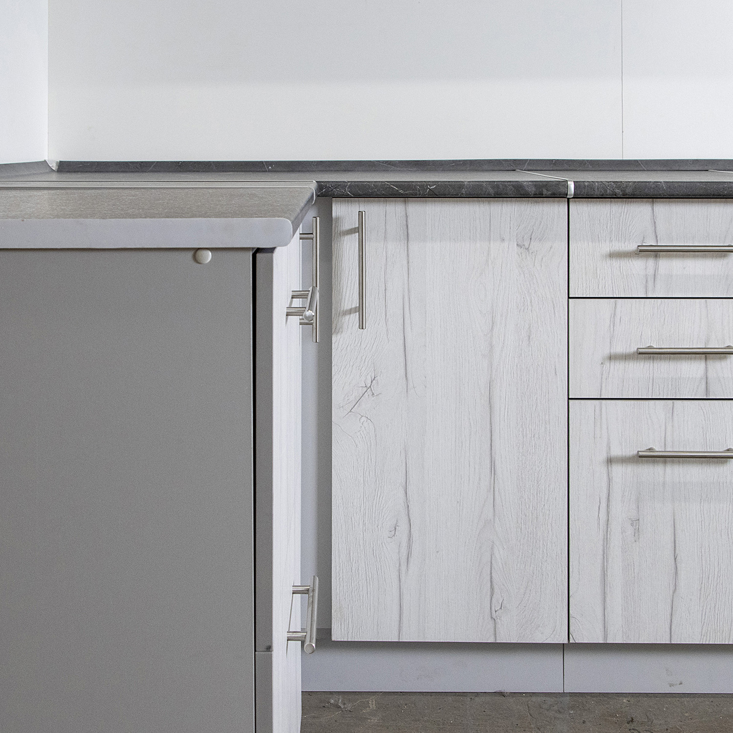 Шкаф напольный угловой 1000х850х600 мм BROZEX-WOOD Camellia, левый, с дверцей, серый / юта