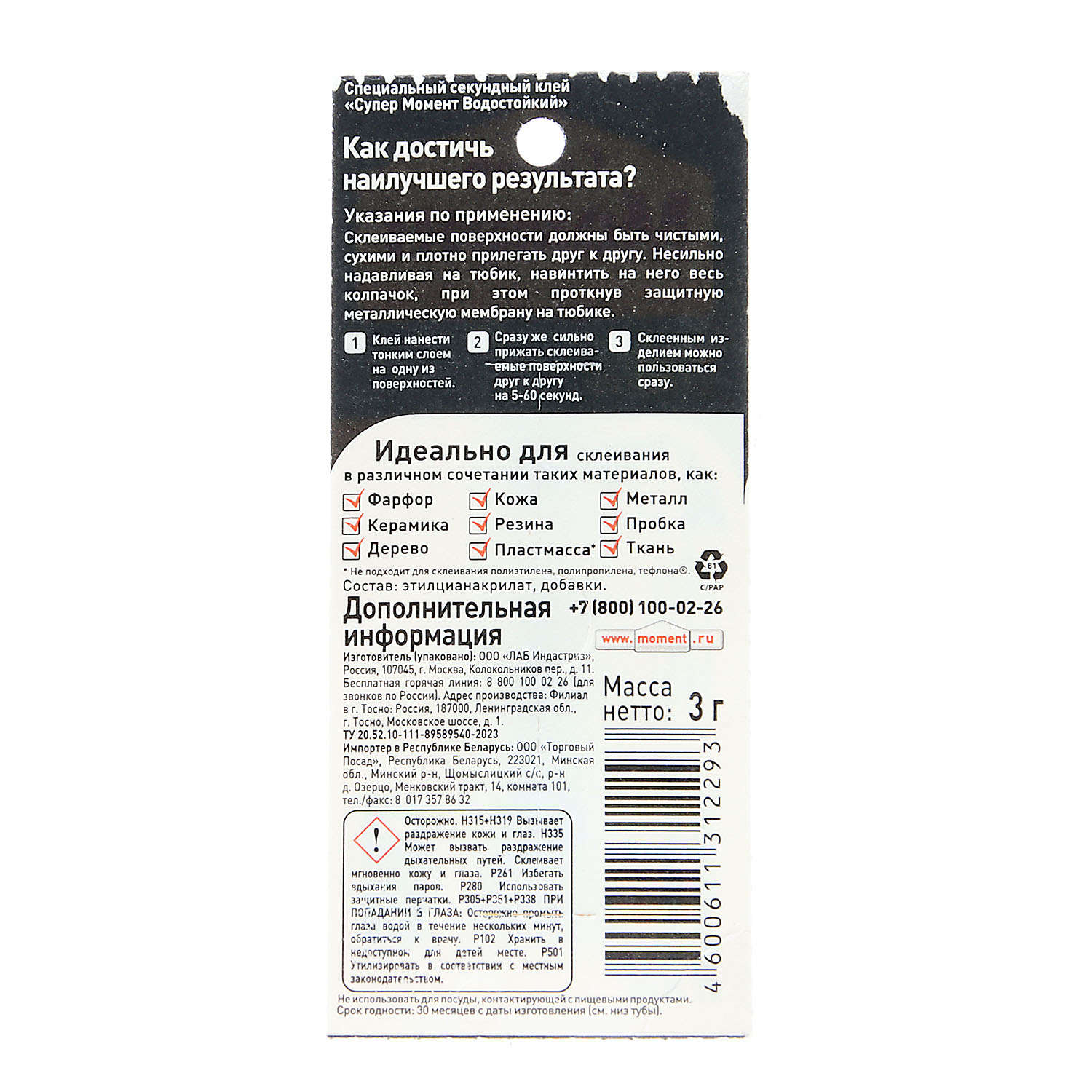 Суперклей Момент, водостойкий, 3 г