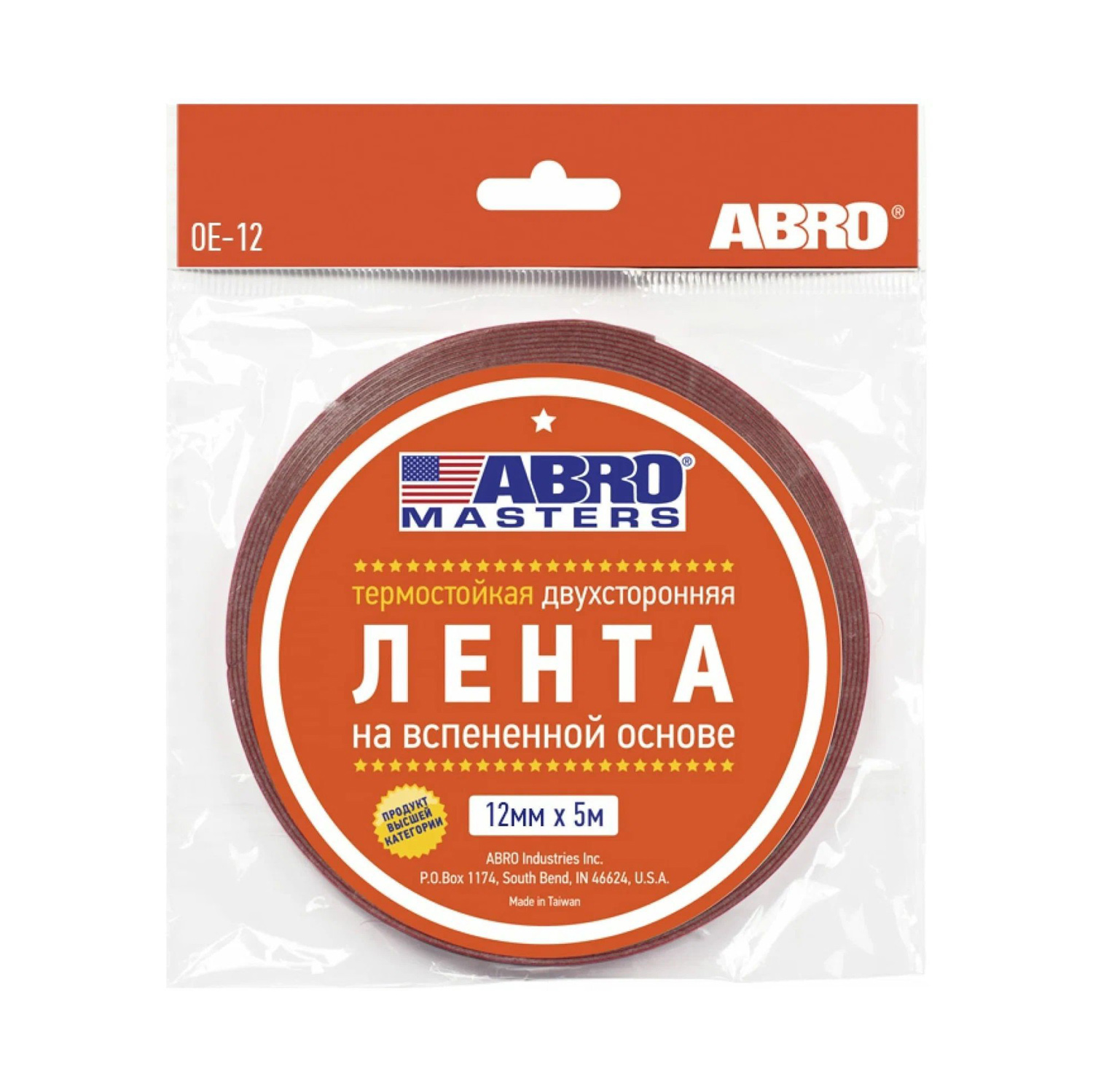 Лента клейкая двусторонняя на вспененной основе Термост. Белая 12мм х5м OE-12-R "ABRO" *1/750