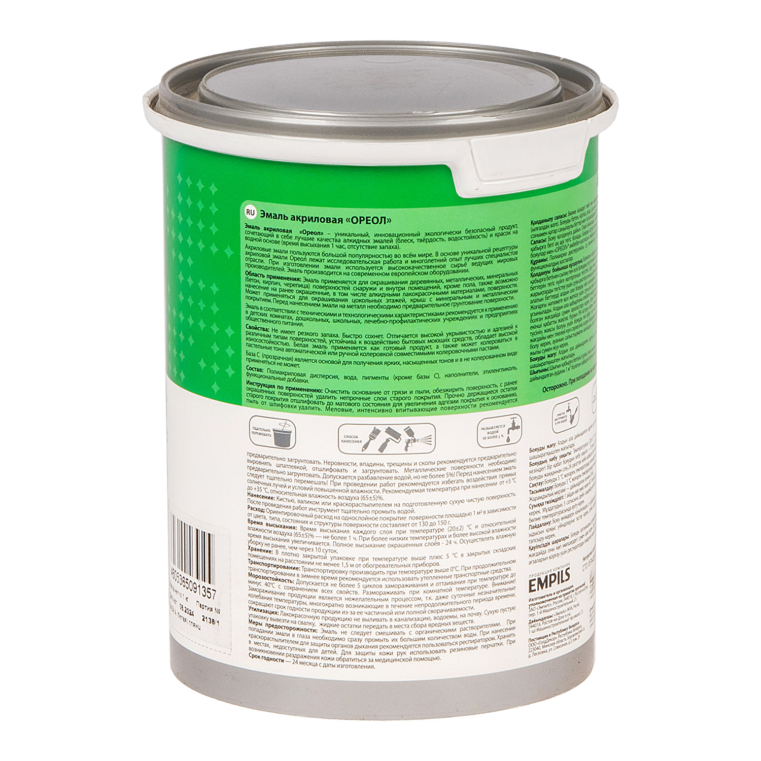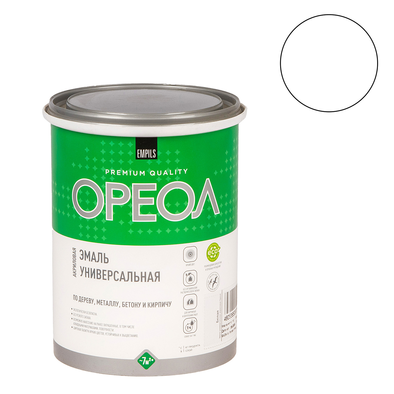 Эмаль акриловая белая 1 кг Ореол *1/6/288