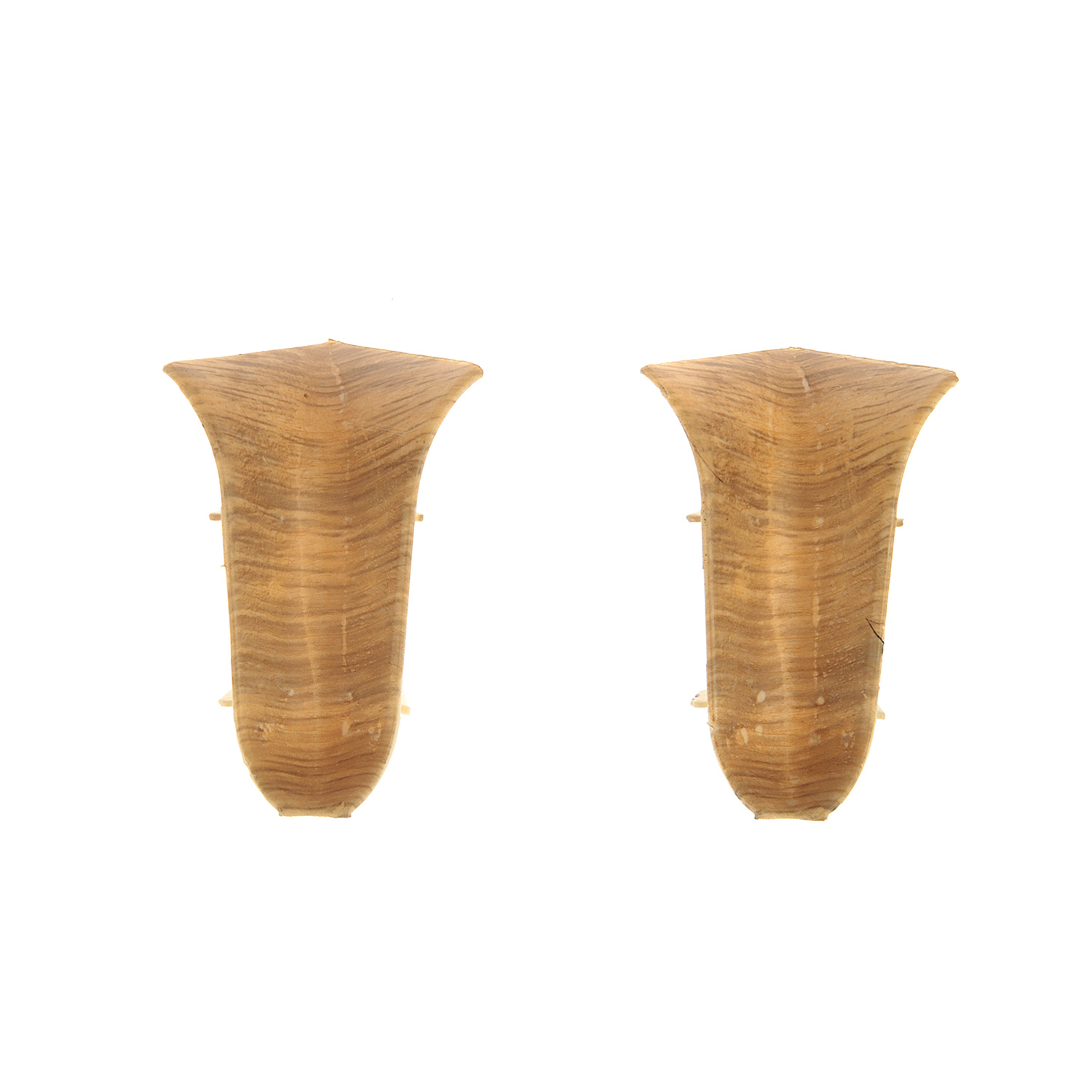Угол для плинтуса внутренний — маскировочный и декоративный элемент, предназначенный для оформления внутренних углов помещения, в местах стыковки плинтусов. В конструкцию угла входят держатели-выемки, необходимые для надежного соединения с боковыми элементами, и накладка, обеспечивающая внешнюю эстетичность изделия. Угол выполнен из пластика, имитирующего фактуру и цвет дерева, в тон напольного плинтуса.