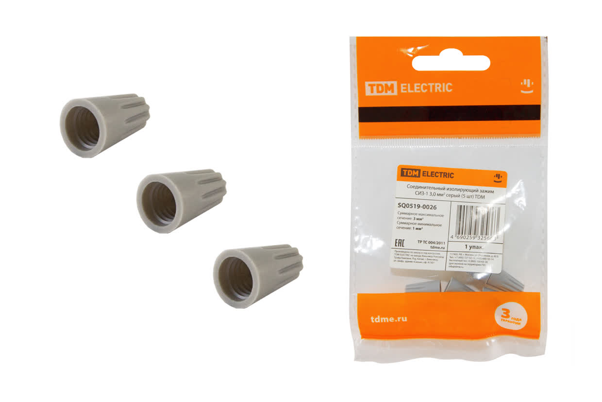 Зажим изолирующий СИЗ-1 3,0мм2 серый (5шт) TDM SQ0519-0026 *1/200