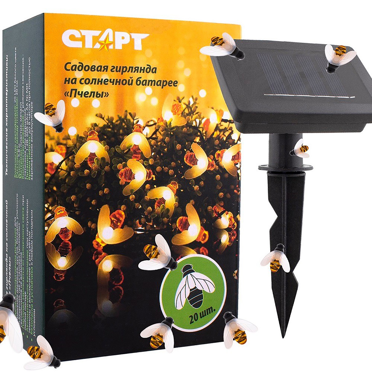 Светильник садовый на солнч. батарее. Старт Сад 20LED Пчелы  *1/12