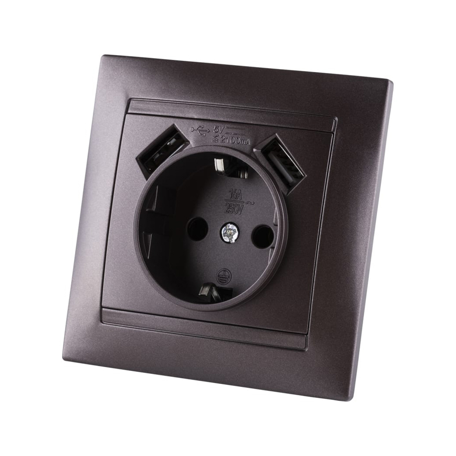 Розетка 2П+З 16А 250В + 2 USB порта 2,1А 5В шоколад "Лама" TDM