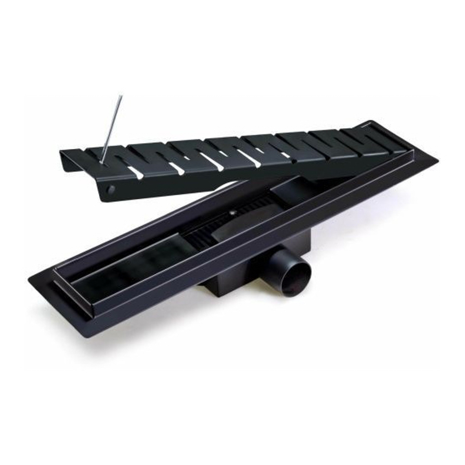 Желоб 700х70 мм, гориз. выпуск, сухой затвор TIM BAD467002BK черный мат. (1/4)