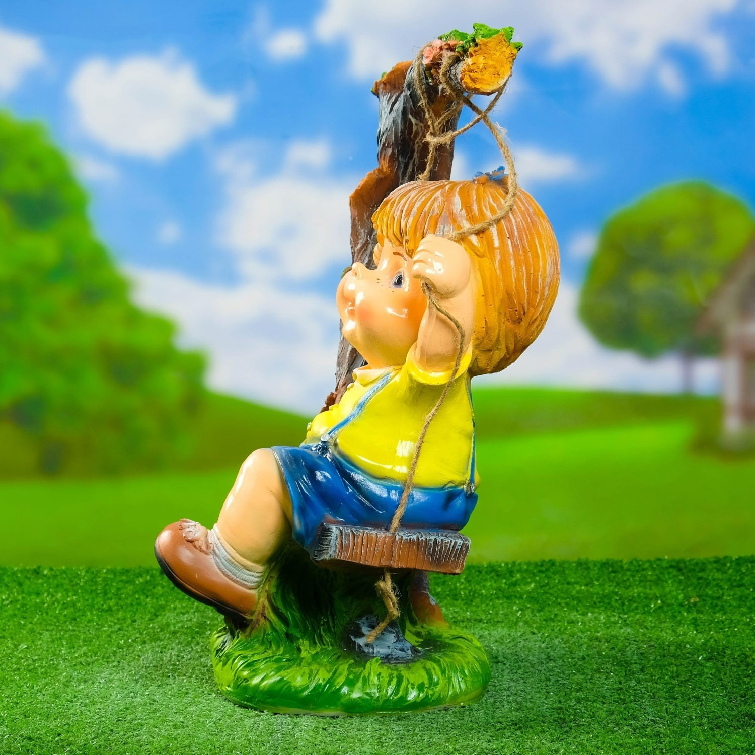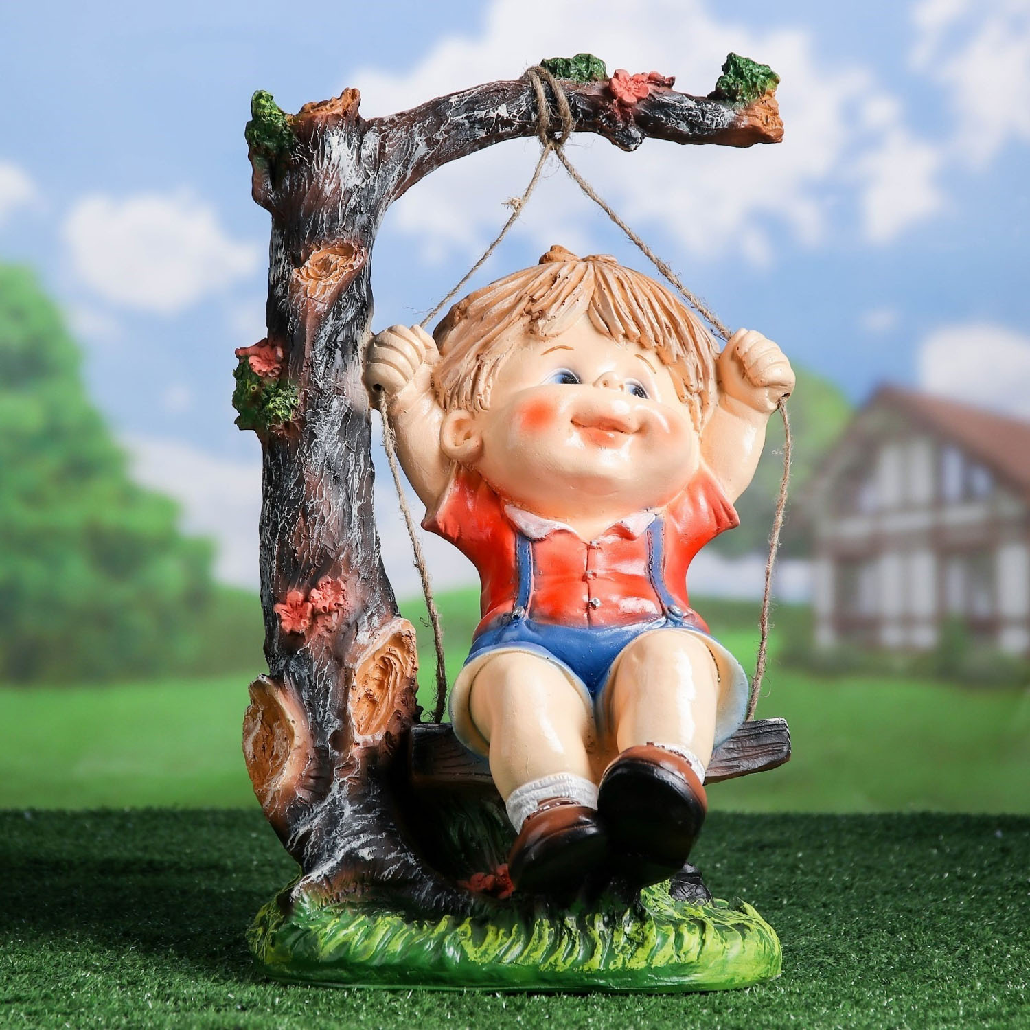 Садовая фигура "Мальчик на качелях" 44см 4074850
