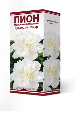 Пионы – травянистые многолетники с мощными мясистыми корнеклубнями, реже кустарники. Стебли до 100 см высотой. Цветки крупные одиночные, простые, полумахровые, махровые; белые, розовые, красные, реже желтые. Листья крупные рассеченные. «Дюшес де Немур» - высота растения 85 см. Срок цветения среднеранний. Цветки крупные, диаметром 15-20 см. Цвет белый, у основания зеленовато-жёлтый оттенок, постепенно становится жемчужно-белым. Очень ароматный. Куст быстро разрастается, обильно цветет. Идеален для срезки.