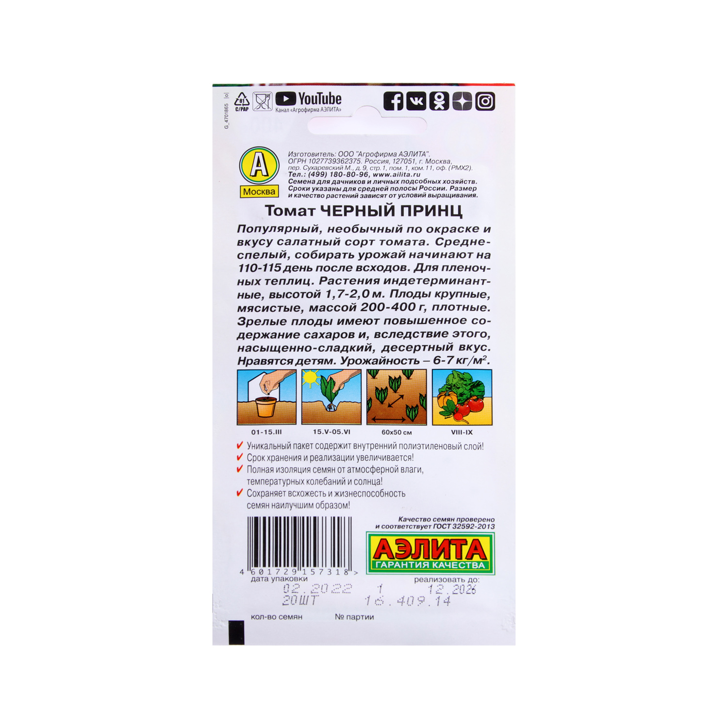 Семена Томат Черный принц 20шт/0,05гр Аэлита цв *10/500