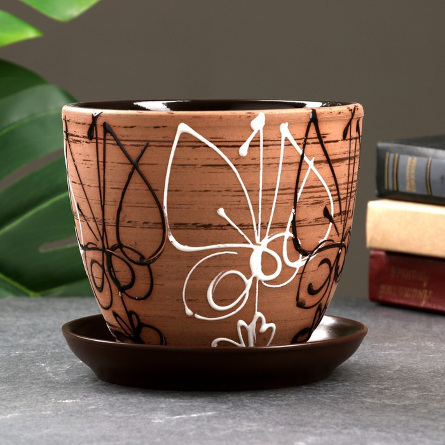 Кашпо керам. "Восток" 1.7л d верха 125мм h140мм с поддоном ВТК2 *6