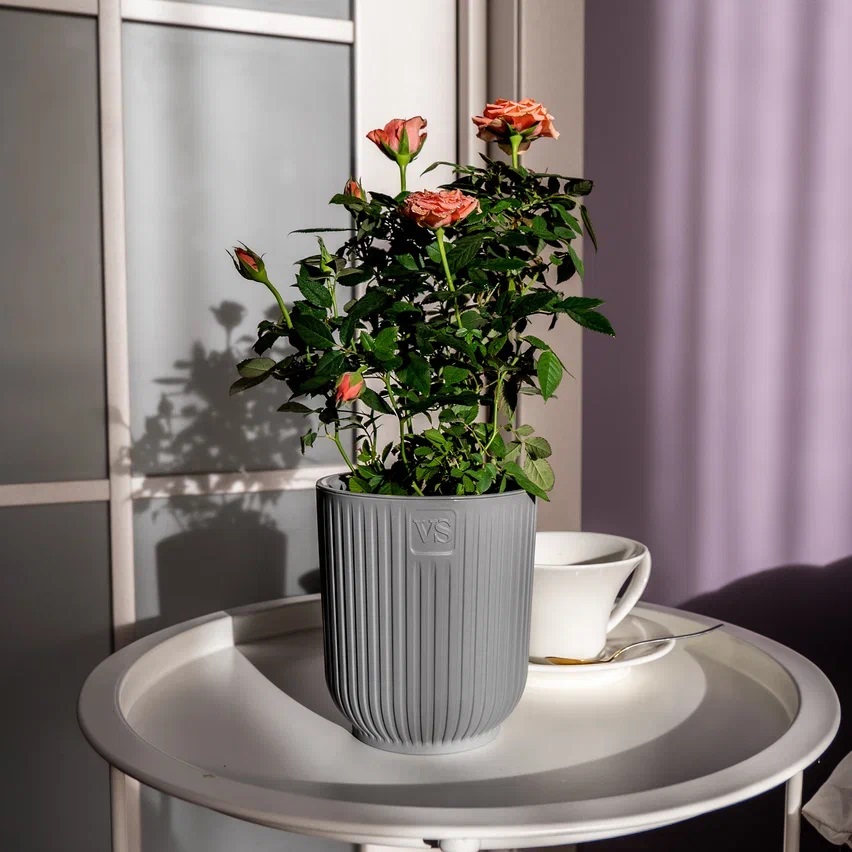 Кашпо пластм. "Эйва" 1,6л d верха 135мм h155мм со вставкой Серый АМО-1,6-03 ("VipSet") *1/10