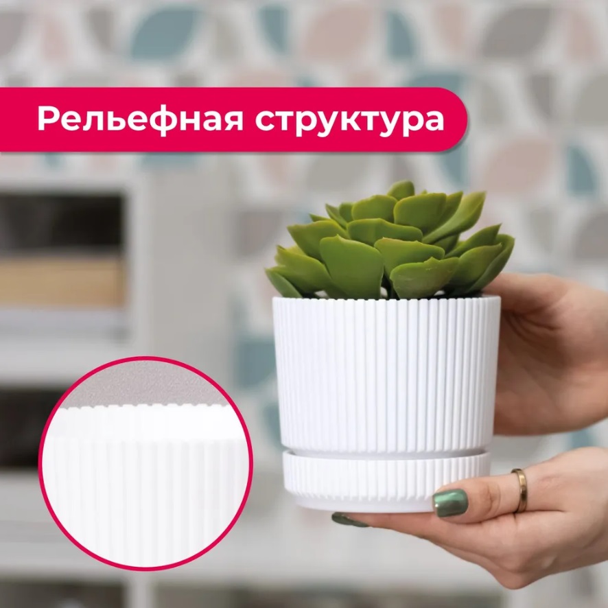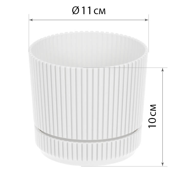 Кашпо пластм. "Стрип" 0,6л d верха 110мм h100мм с поддоном Белый М3245 ("М-Пластика") *1/18