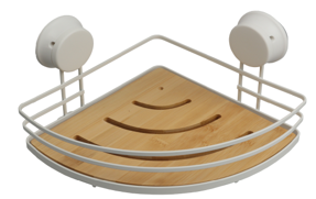 Полка д/ванной Zenfort угловая на присоске, металл/бамбук белый 101140 *1/36