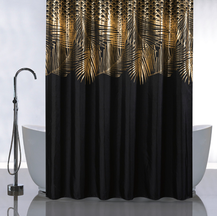 Штора для ванной "Санакс" п/эстер 180*180см "Золотые перья на черном" без колец 01-107 *1/24