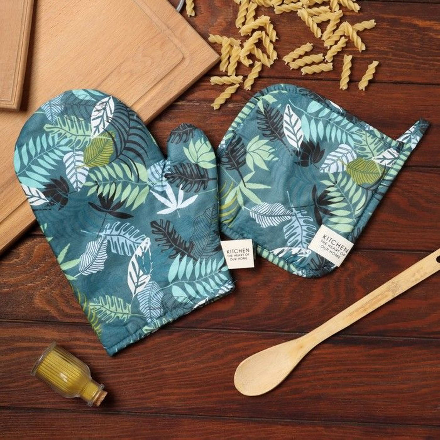 Набор прихваток Папоротник варежка-прихватка 20х28см, прихватка 19х19см 80%хлопок, 20%п/э Этель *1