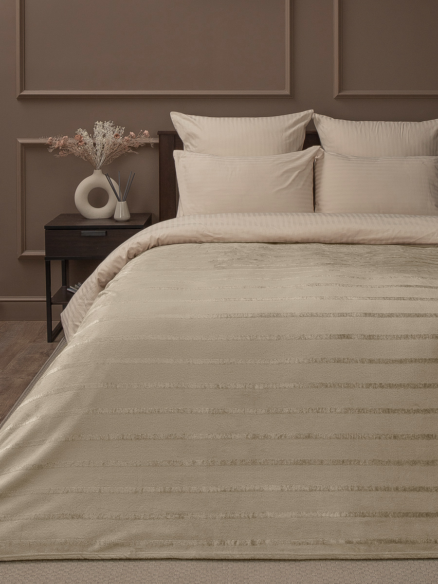 Плед 200*220см фланель однотонный страйп бежевый TF FNS BE13 005/2022 NC Absolute *1