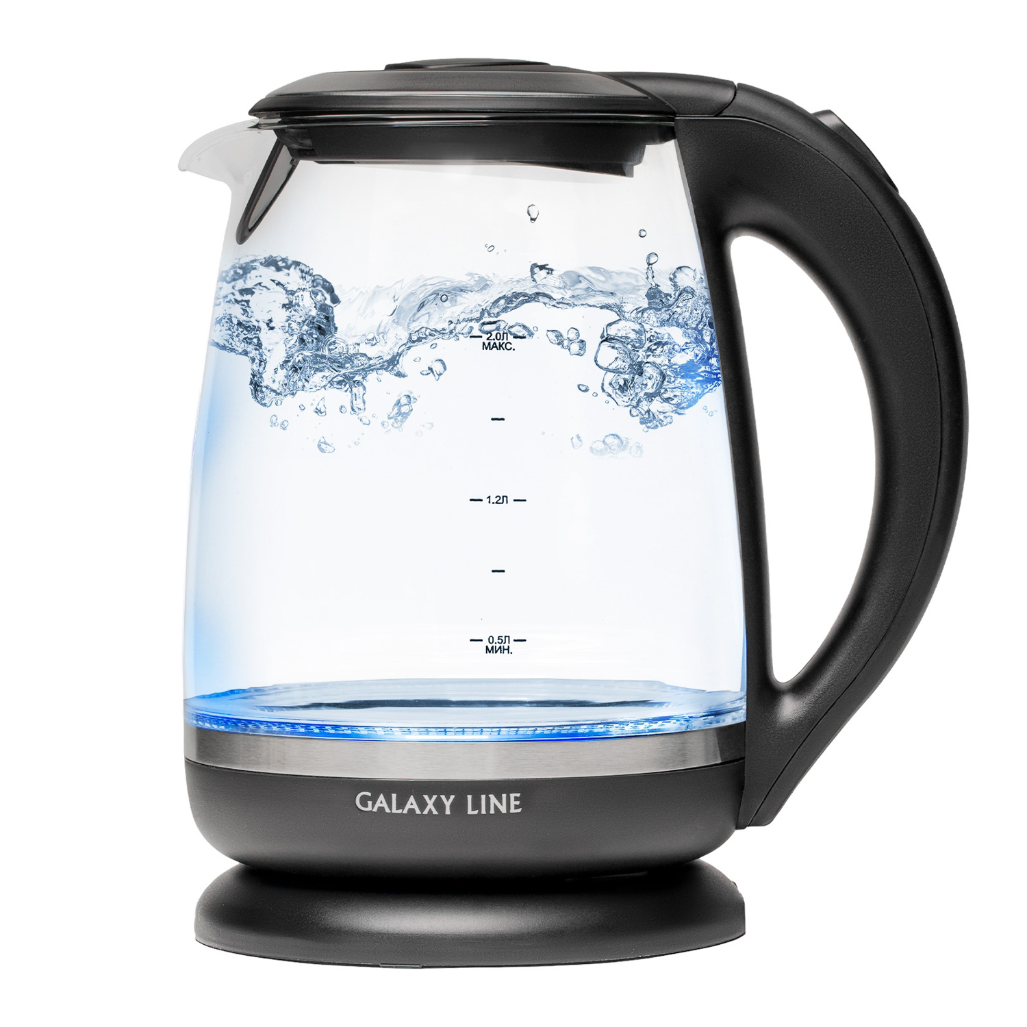 Чайник эл. стекло 2,0л 2200Вт GALAXY LINE GL 0559 черный, автоотключение, шкала уровня воды *1/6