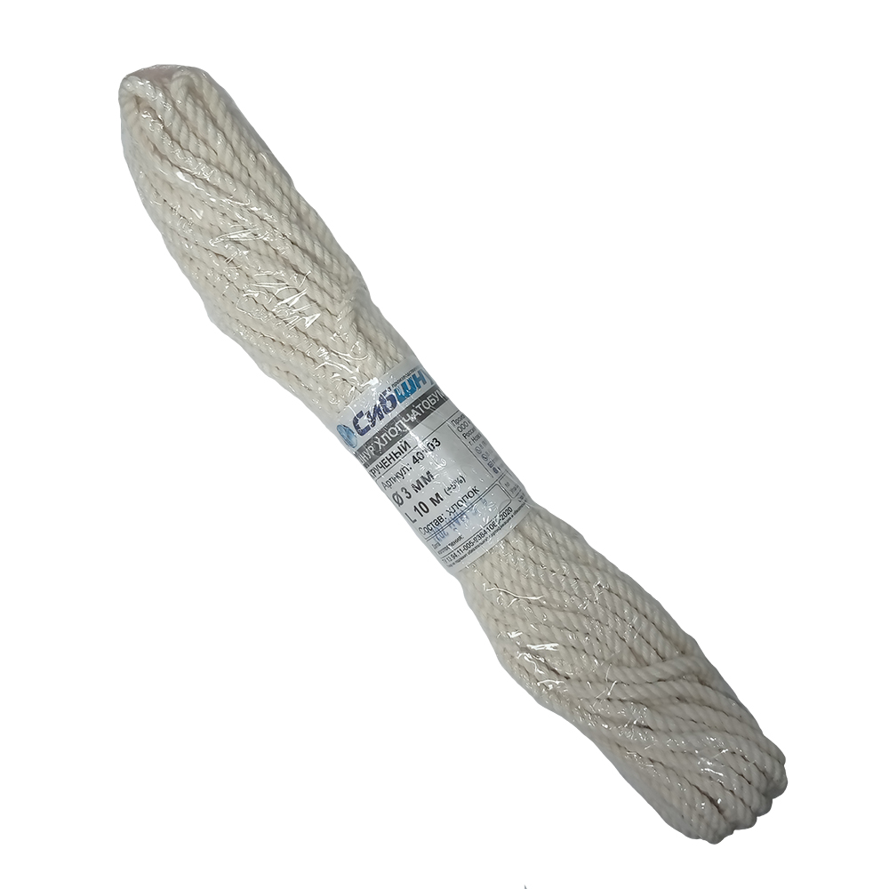 Шнур хлопчатобумажный d3мм дл.10м крученый 3-х прядный арт.40103 ("Сибшнур") *1/150