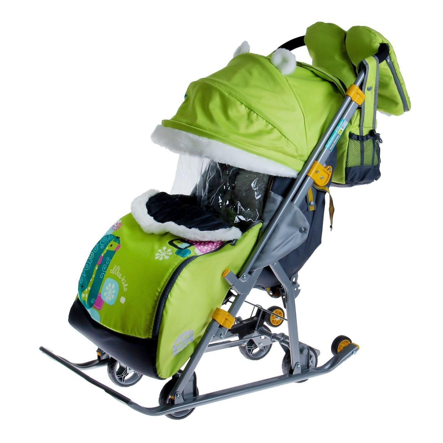 Санки-коляска детские "Ника Детям 7-2" лимонный рис."жираф" плоск.полозья/колеса НД7-2 *1