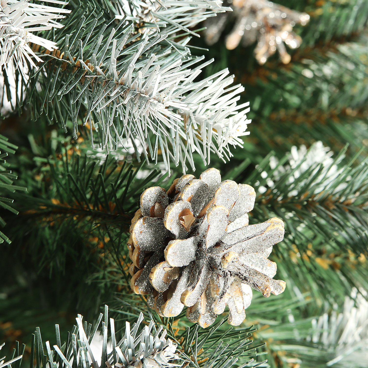 Искусственная елка «Элитная» с эффектом инея и декором в виде шишек превратит интерьер в новогоднюю сказку! Благодаря пышным «заснеженным» ветвям, плотной хвое и имитации фактуры дерева ель выглядит натурально и торжественно. Непревзойденное качество, классический конический силуэт, раскидистые пушистые ветви никого не оставят равнодушным. Елка выглядит нарядно и торжественно, поэтому украшать ее дополнительным декором необязательно. Модель имеет прочную крестообразную подставку, которая обеспечивает отличную устойчивость.