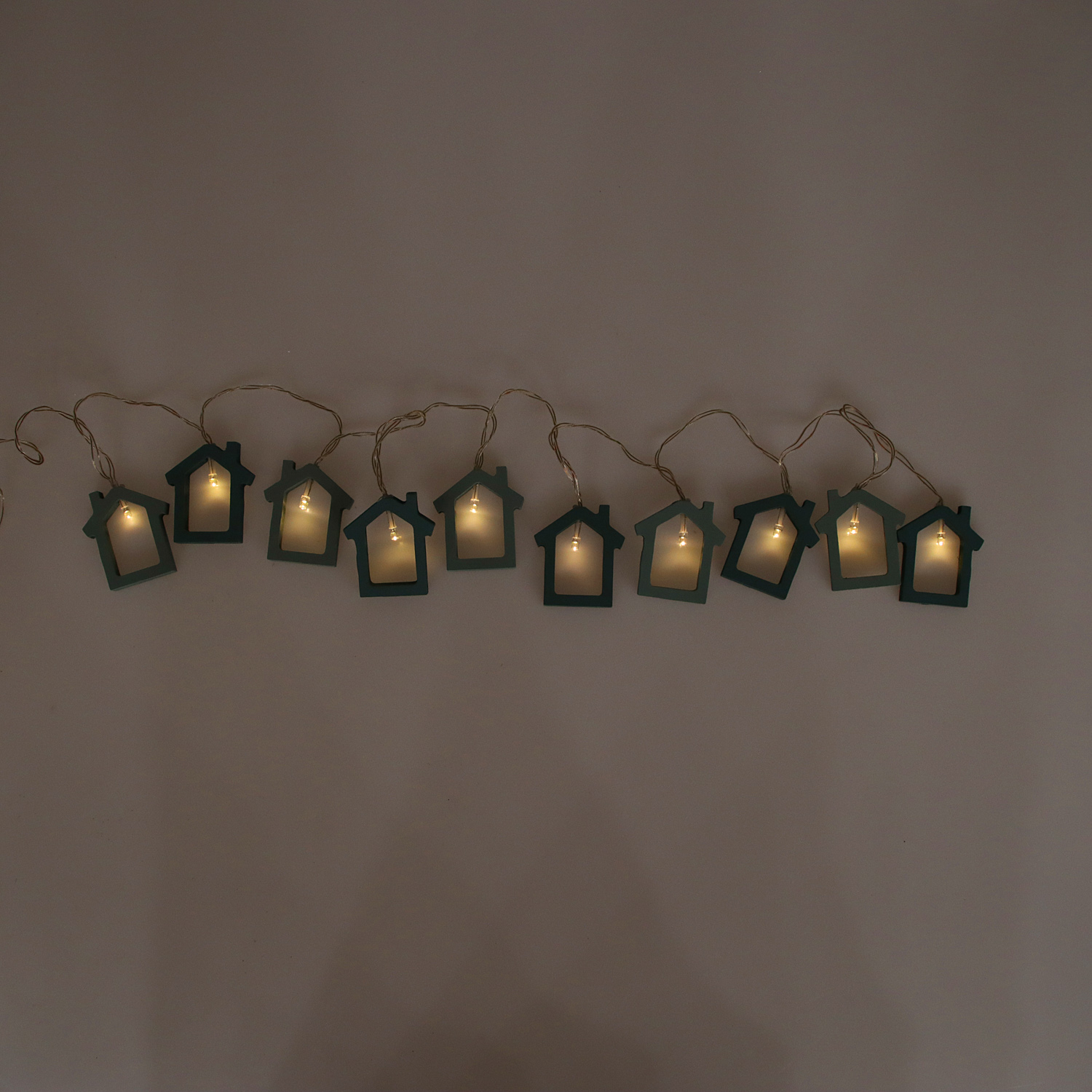 Гирлянда НИТЬ, 1.5 м, с насадк. "Дом синий", Н.С., LED-10-3V, 2*АА (не в компл), фиксинг, Т/БЕЛЫЙ