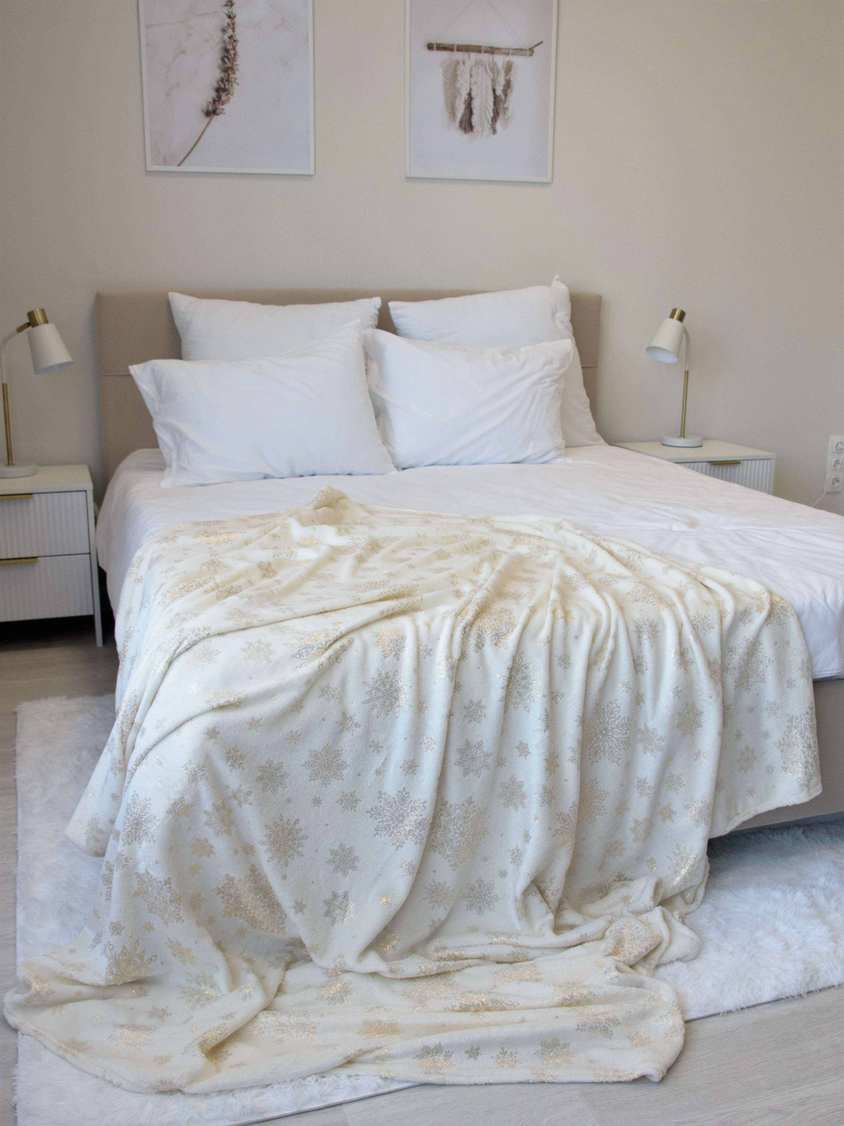 Плед 180*200см микрофибра Снежинки золото Belezza *1