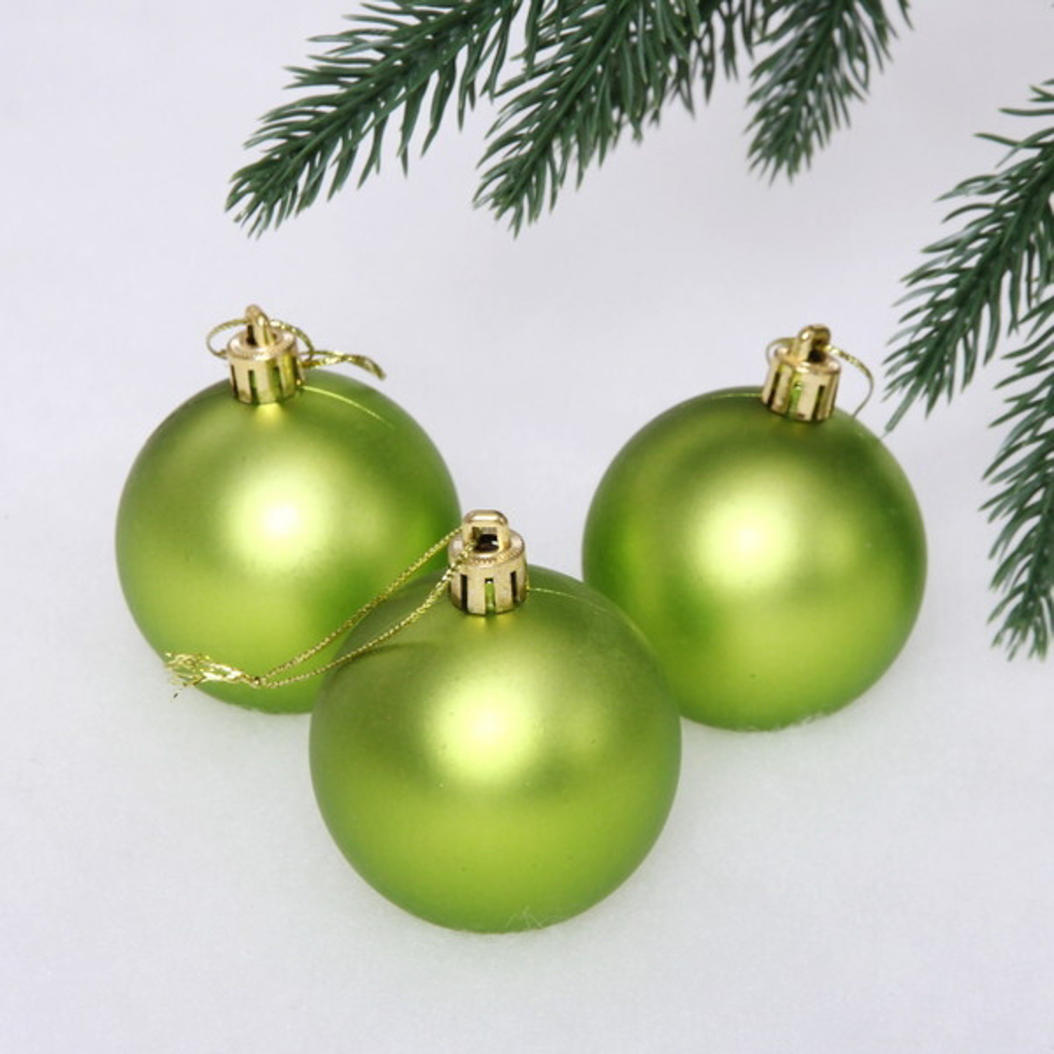 Новогодние шары 6 см (набор 3 шт) "Матовый", салатовый