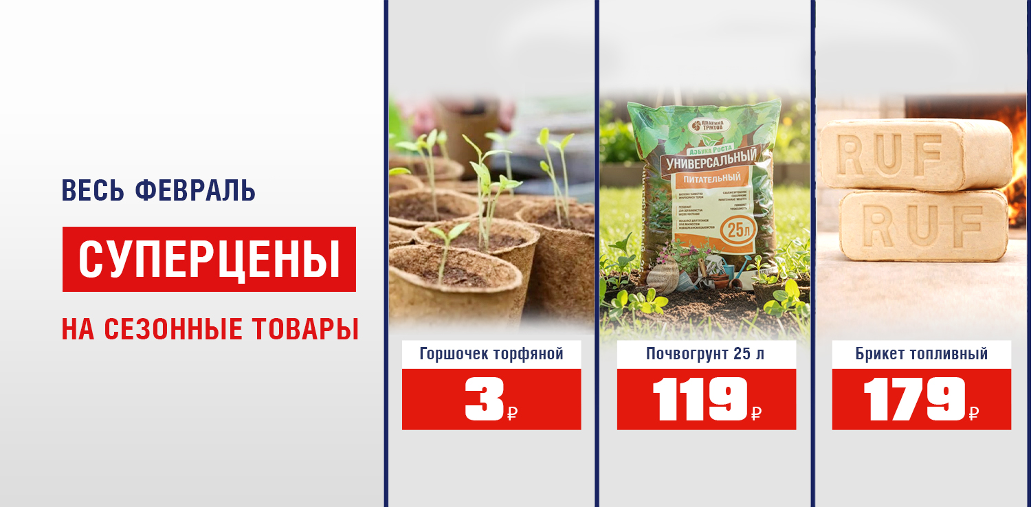 Только до 28 февраля в ДомоСтрой суперцены на сезонные товары для дачи и сада! Успейте заказать на сайте или приобрести в магазине.
